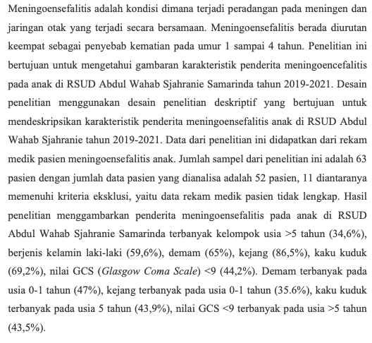 Gambaran Karakteristik Penderita Meningoensefalitis pada Anak di RSUD Abdul Wahab Sjahranie Samarinda Tahun 2019-2021